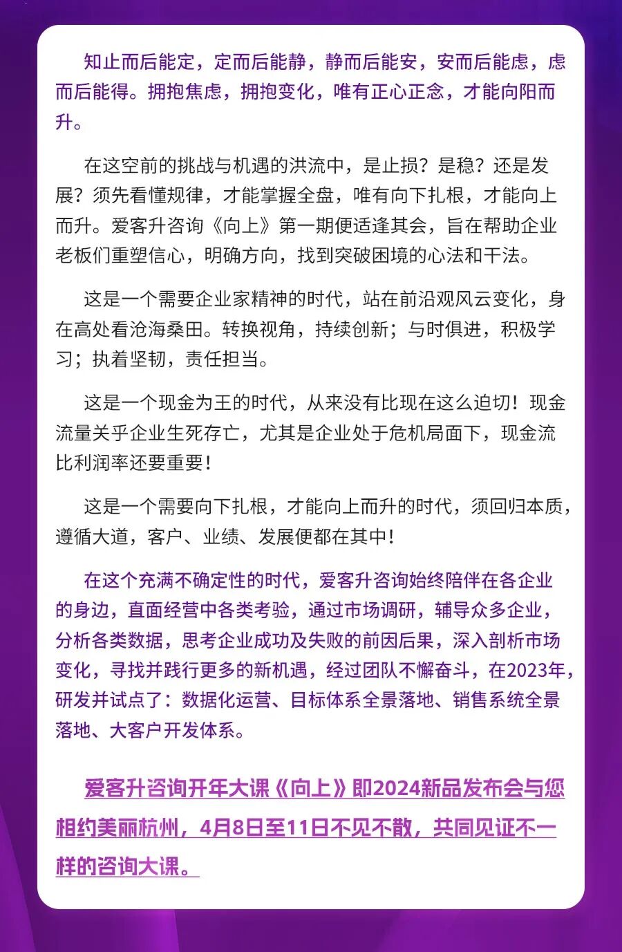 爱客升咨询首期“向上”养生大健康产业高质量发展大型智慧公开课与您相约美丽杭州